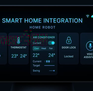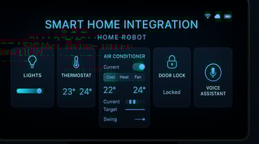 The robot integrates with smart home systems to control lighting, temperature, and humidity. This makes the living environment more comfortable and easier for seniors to manage without physical effort.